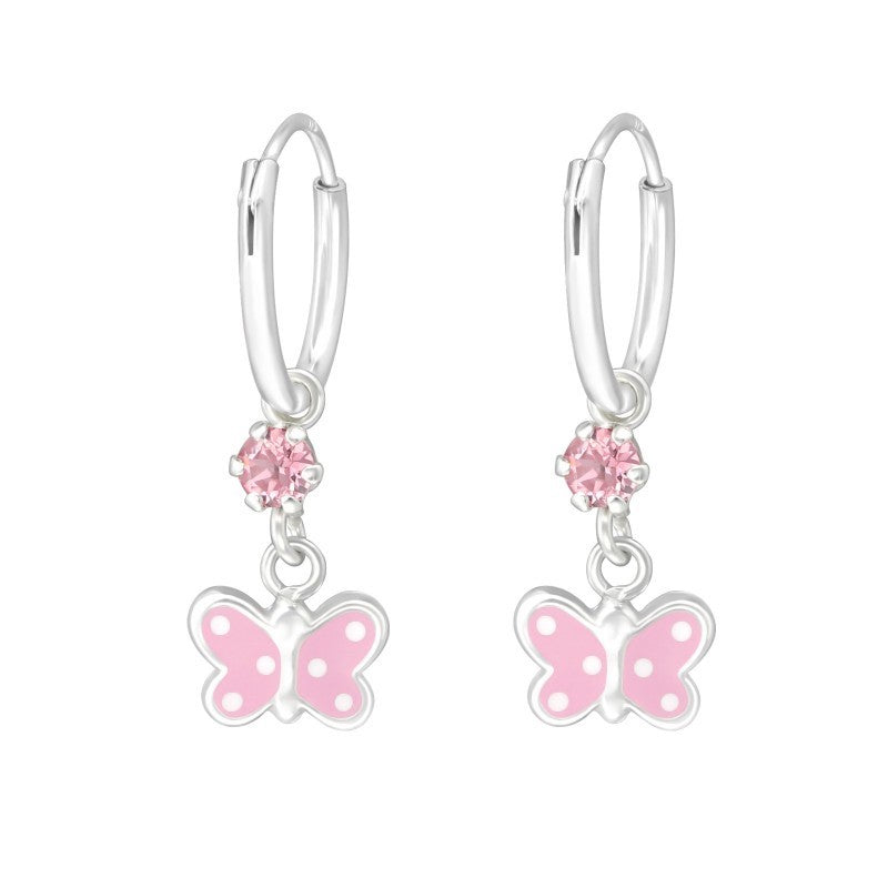 Creoler til børn med hængende sommerfugle og krystaller i sølv 925 A4S32894