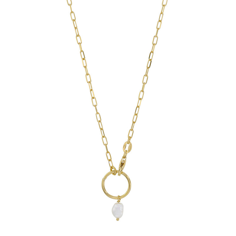 LAVAL Guldfarvet sterlingsølv halskæde med syntetisk perle og hoop (317871D)