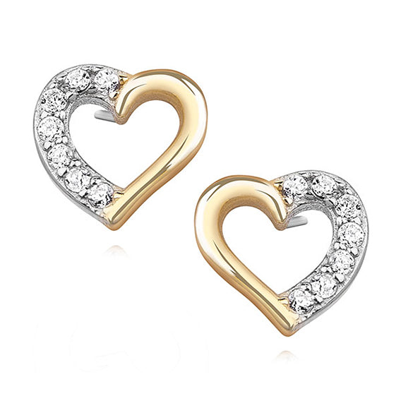 Sølv (925) hjerte øreringe med zirconia forgyldte/rhodineret (10523)