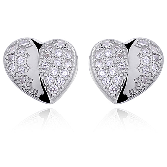 Sølv (925) hjerte øreringe med zirkoner (4181)