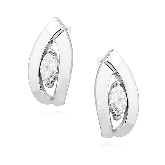 Sølv (925) klassiske øreringe med hvide zirkoner, latch back lås (11555)