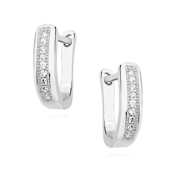 Sølv (925) øreringe med hvide zirkoner, latch back lås (11656)