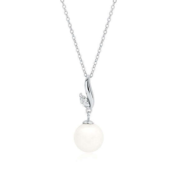 Sølv (925) perlehalskæde med hvide zirkoner 42-45 cm, justerbar (12489)