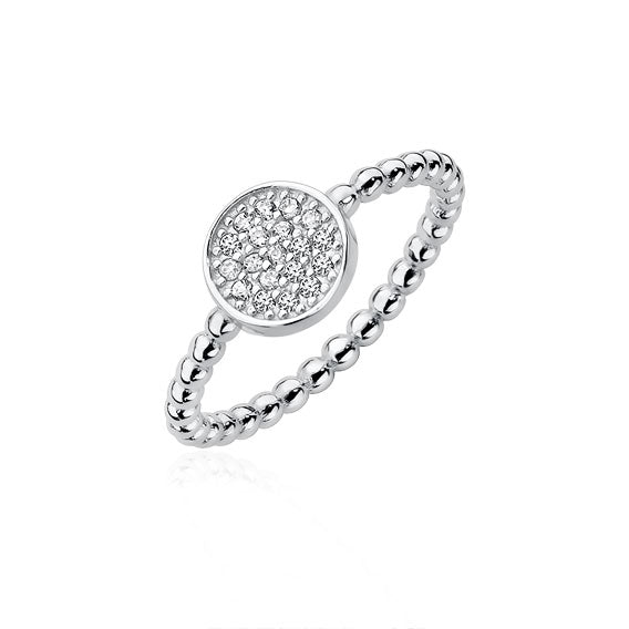 Sølv (925) ring med rundt element og zirkoner (12373)