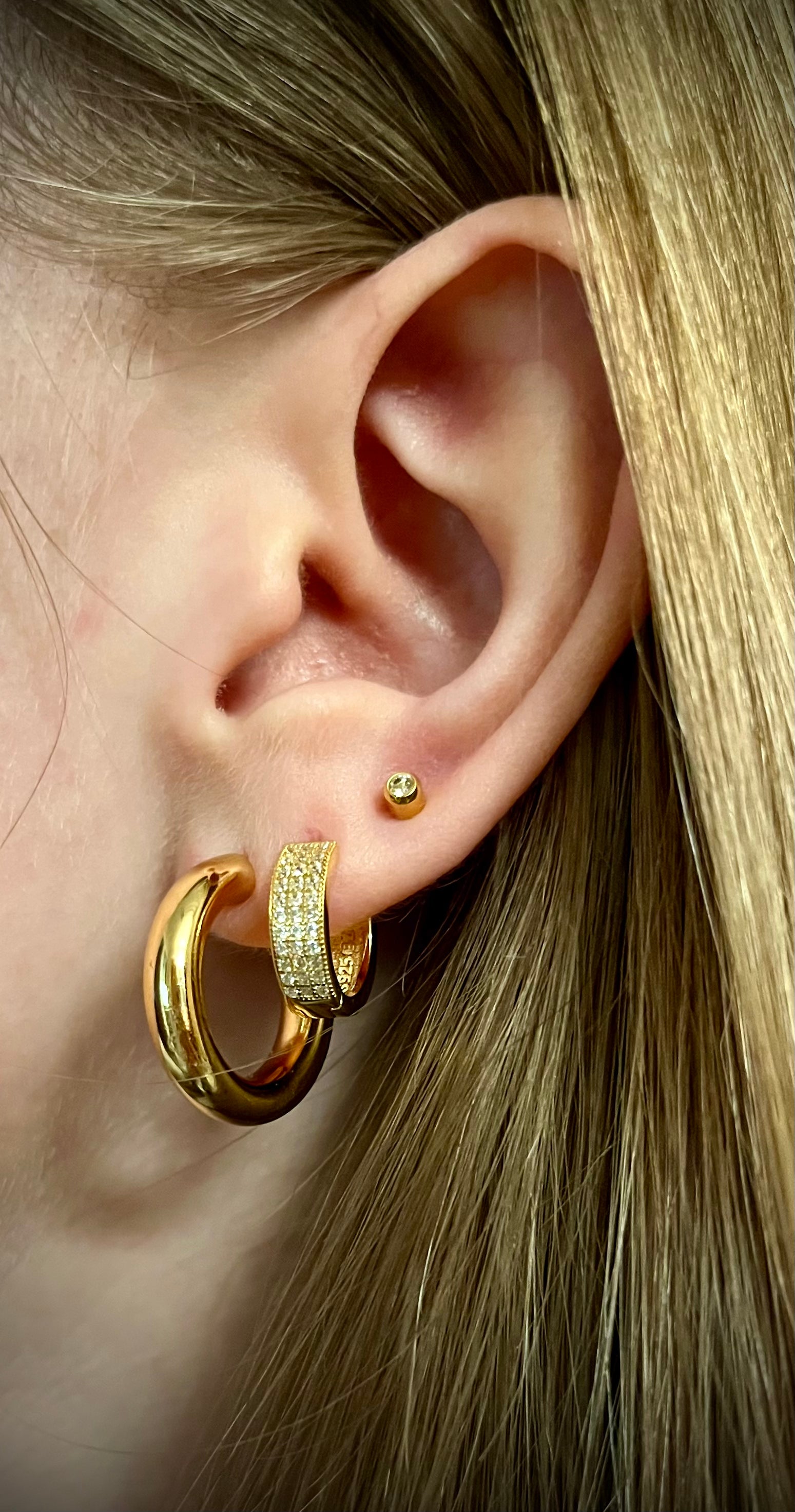 Smukke creoler ørestikker med 3 rækker zirkoner, Latch back (flere varianter)