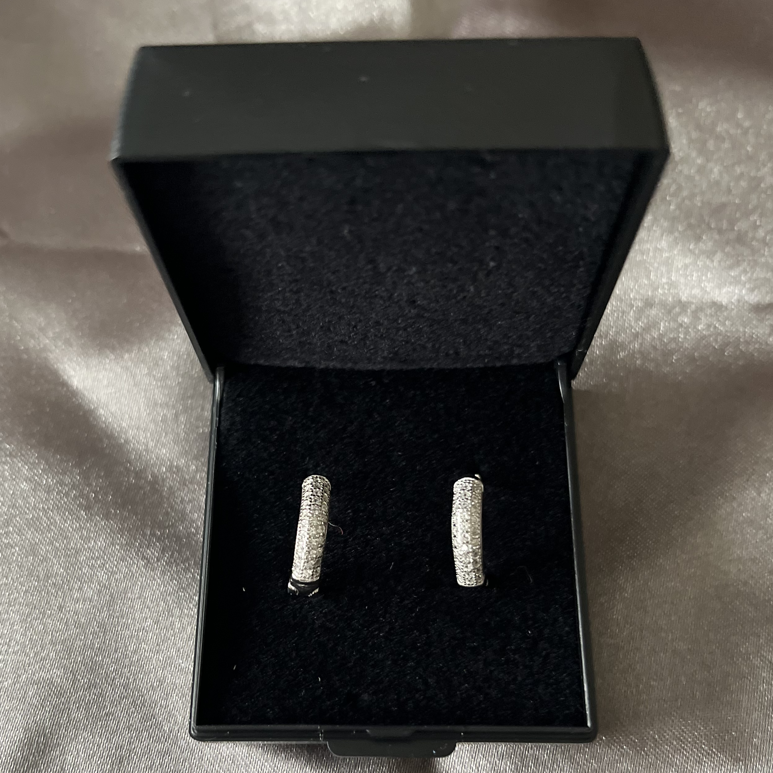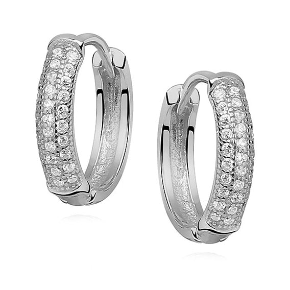 Sølv (925) smukke creoler ørestikker med zirkoner, Latch back (10062)