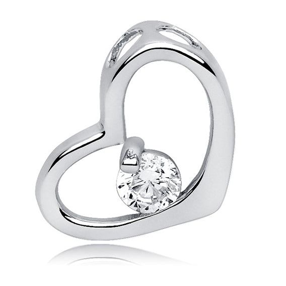 Sølv (925) vedhæng - hjerte med hvide zirkoner (4945)