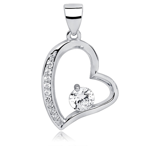 Sølv (925) vedhæng - hjerte og hvide zirkoner (4944)