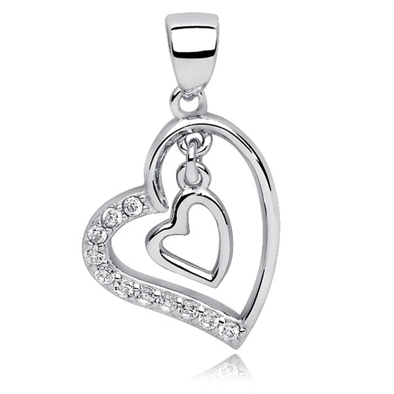 Sølv (925) vedhæng hvide zirkoner - hjerte i hjerte (4937)