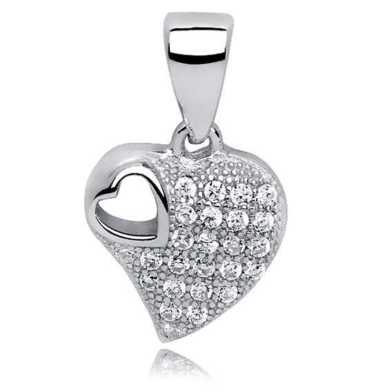 Sølv (925) vedhæng med hvide zirkoner - hjerte i midten (4925)